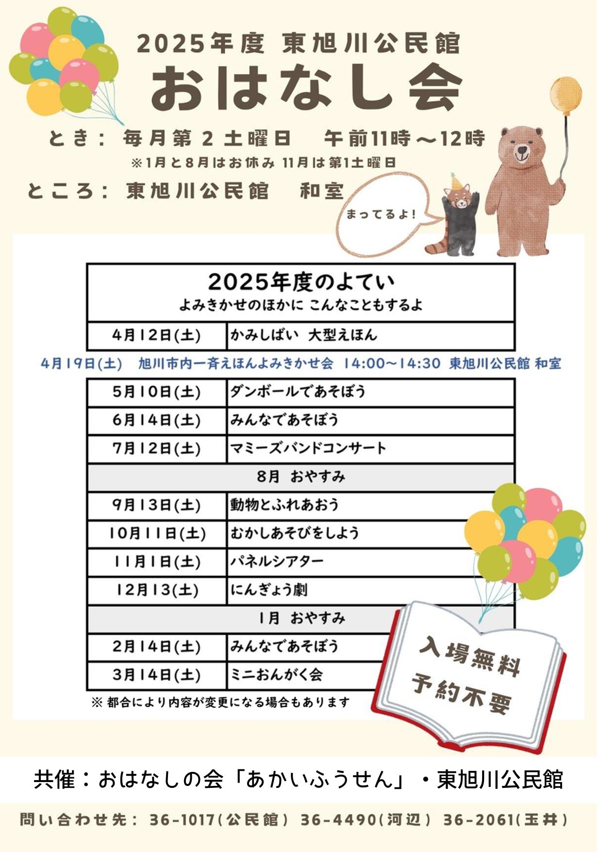 この情報は、「旭川市東旭川公民館」により登録されました。