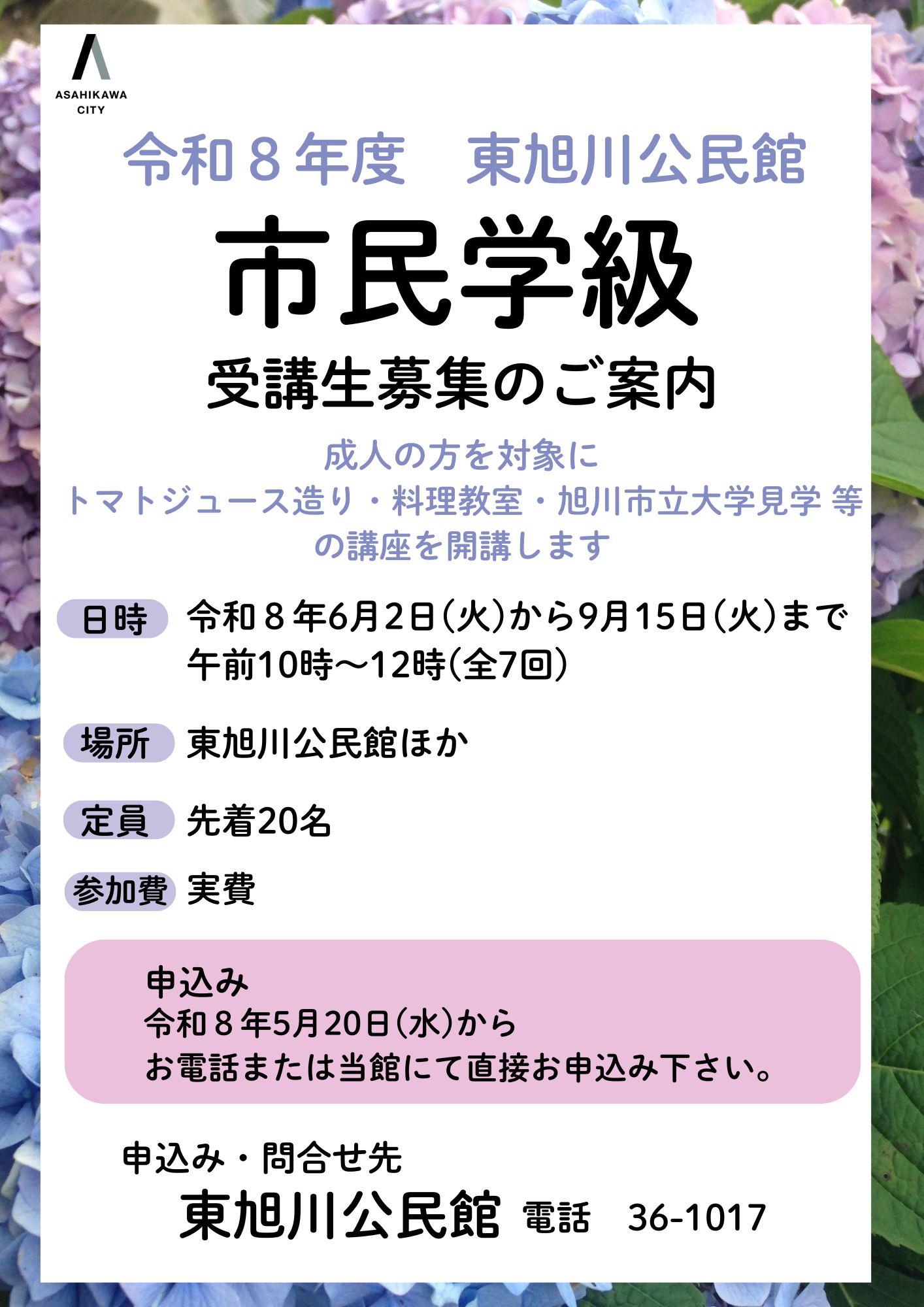 この情報は、「旭川市東旭川公民館」により登録されました。