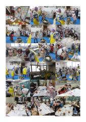 「春光台防災キャンプ」11/29・11/30 ダンボールベッド組立て,防災食を食べ,新聞紙で食器・スリッパも作ったよ!